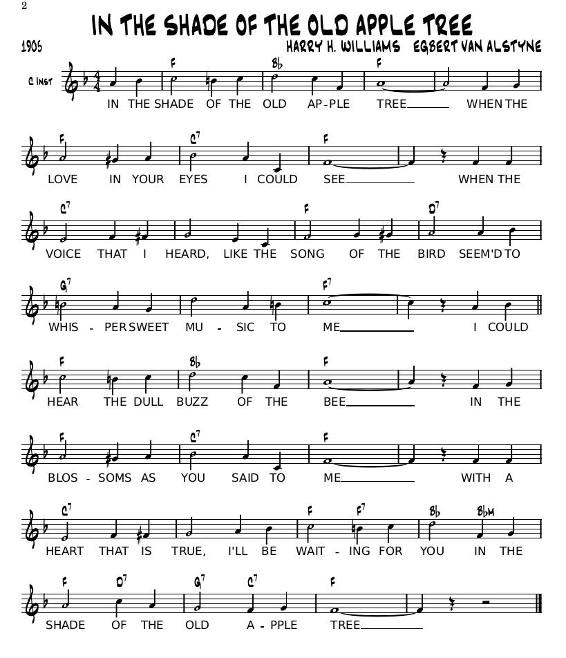 Take, for instance, In the Shade of the Old Apple Tree above. The opening line chord progressions